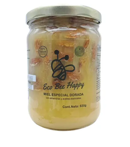 Miel especial dorada con almendras y aceites esenciales 630 gr Eco Bee Happy