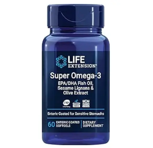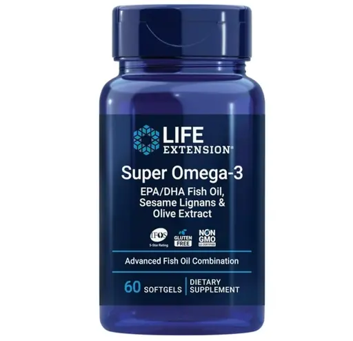 Super omega 3 epa dha fish oil sesame lignans olive extract 60 softgels Life Extension