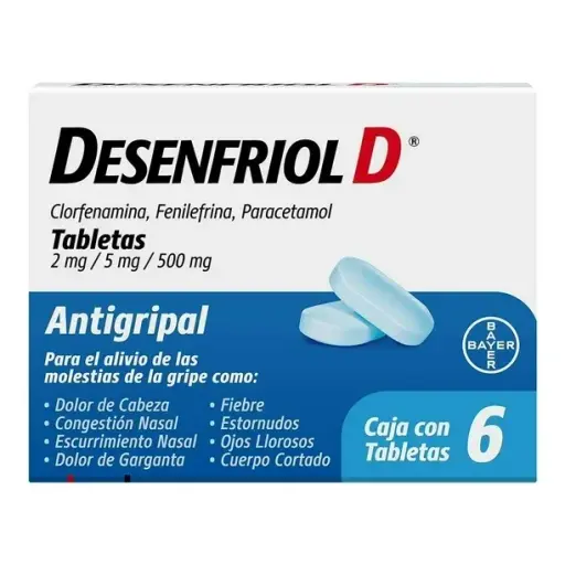 Desenfriol D 2 / 5 / 500 Mg 6 Tabletas (clorfenamina/fenilefrina/paracetamol)