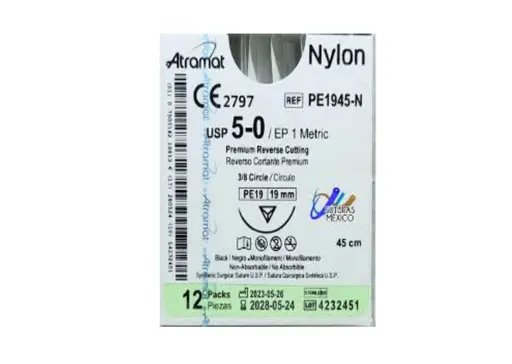 Sutura atramat nylon negro 5 0 aguja 19 mm 3 8 reverso cortante hebra 45 cm no absorbible