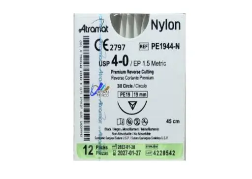 Sutura atramat nylon negro 4 0 aguja 19 mm 3 8 reverso cortante hebra 45 cm no absorbible