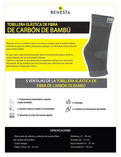 Tobillera Elastica de Fibra de Carbon de Bambu Benesta