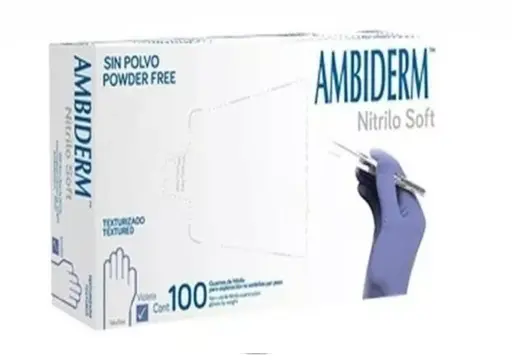 Guante de nitrilo soft no esteril ambiderm para exploracion violeta mediano caja con 100 pi