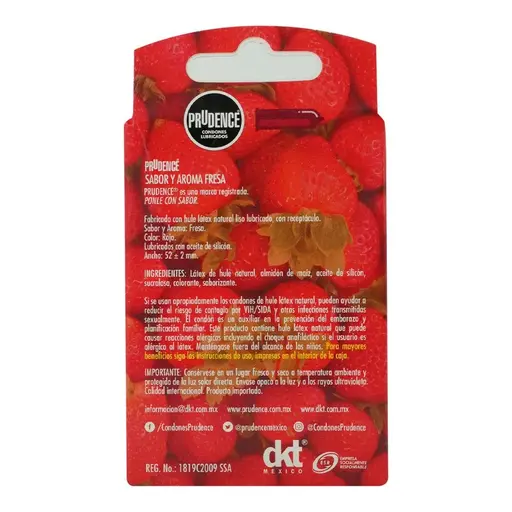 PIEZALos preservativos Prudence Fresa vienen en un paquete de 3 unidades, con un sabor dulce y refrescante a fresa. Ofrecen una experiencia íntima más divertida y placentera, manteniendo la seguridad y comodidad en todo momento. Perfectos para quienes buscan disfrutar de una experiencia más sabrosa y segura.