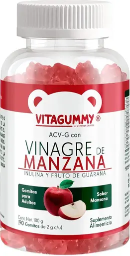 PIEZAVinagre de Manzana 90 Gomitas Vitagummy es un suplemento en gomitas que ofrece los beneficios del vinagre de manzana de manera práctica y deliciosa. Ayuda a mejorar la digestión, apoyar el control de peso y equilibrar los niveles de azúcar en la sangre. Con 90 gomitas por envase, es una opción fácil y agradable para incorporar este tradicional ingrediente en tu rutina diaria de bienestar.
