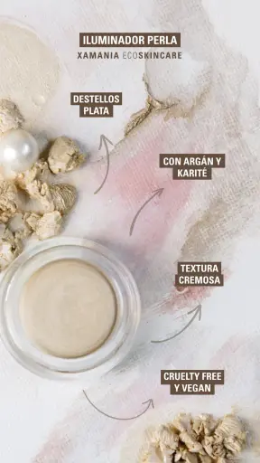 EL iluminador PERLA y su color blanco tornasolado con brillos plata y dorados : usa para dar un efecto de luminosidad natural, aplica con el dedo o una brocha sobre pómulos, párpados, nariz, esquina del lagrimal, arco de las cejas, labio superior, hombros y clavícula.