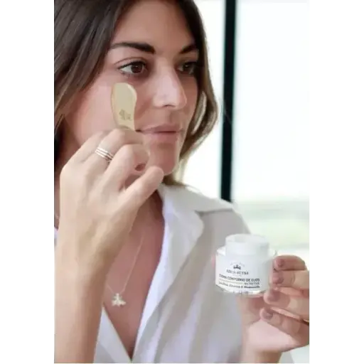 Aplicar diariamente por la mañana y por la noche en el área del contorno de ojos, esparcir dando pequeños golpecitos con el dedo anular.