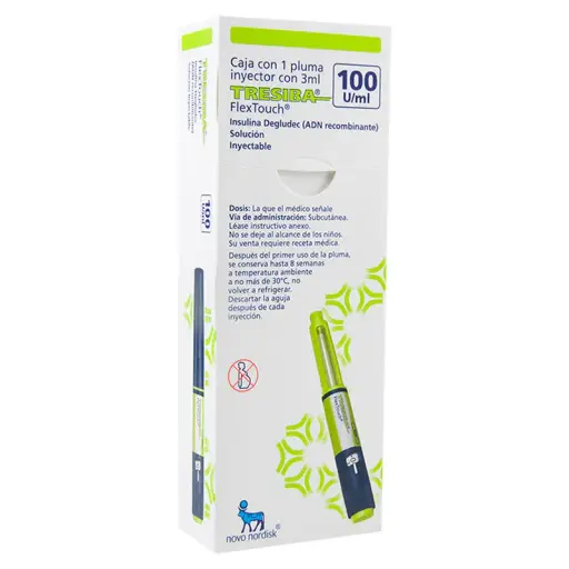 PIEZATresiba Flex-Tou Plum 1x3 ml es una pluma precargada que contiene insulina degludec, un tipo de insulina de acción prolongada. Está diseñada para ayudar a controlar los niveles de azúcar en la sangre en personas con diabetes tipo 1 o tipo 2. La insulina degludec proporciona un control estable durante 24 horas, con una dosis que se puede ajustar según las necesidades individuales del paciente. Esta pluma es fácil de usar y ofrece comodidad y precisión en la administración.