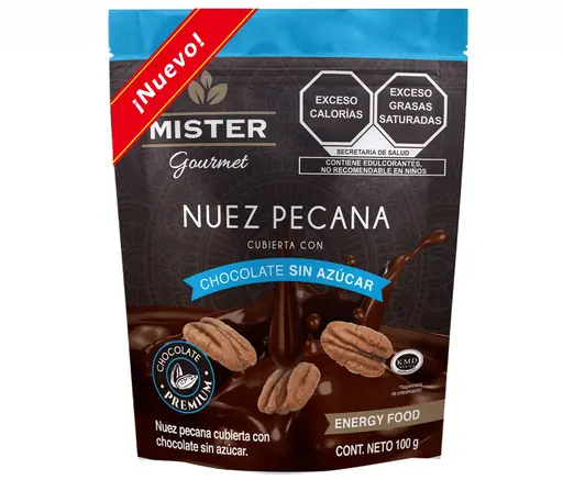Nuez pecana con chocolate sin azucar 100 gr Mister gourmet