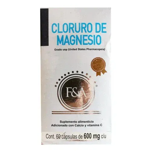 PIEZAF&A Cloruro de Magnesio Suplemento Alimenticio 60 Cápsulas es un complemento nutricional que aporta cloruro de magnesio, un mineral esencial para la salud general. El magnesio es fundamental para el funcionamiento adecuado del sistema nervioso, muscular y cardiovascular, ayudando a reducir la fatiga, mejorar la circulación y promover el bienestar óseo. Este suplemento en cápsulas es ideal para quienes buscan mantener niveles adecuados de magnesio en su organismo, especialmente en casos de estrés, cansancio o desequilibrios en los electrolitos. Con 60 cápsulas por frasco, es una opción práctica y efectiva para incorporar este mineral en la rutina diaria.