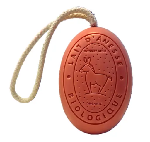 Jabon de leche de burra organico con cuerda 175 g fresa