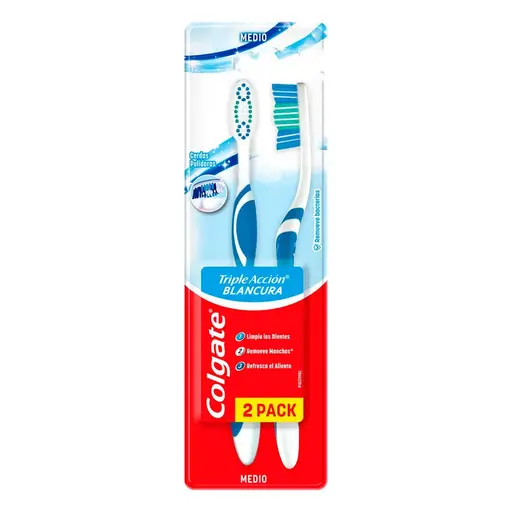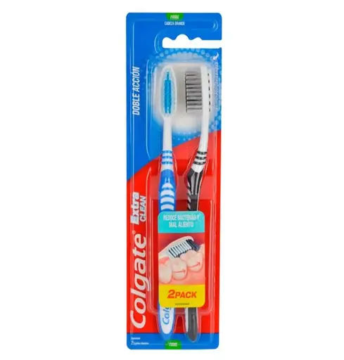 Mantén la salud de tu boca utilizando diariamente el Cepillo Dental Extra Clean de Colgate en una presentación de 2 piezas.