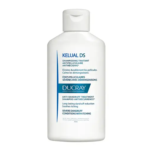 El champú auxiliar tratante kelual ds ayuda a calmar la comezón y eliminar las escamas.