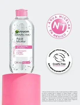 PIEZAEl agua micelar todo en uno de Garnier cuenta con tecnología de micelas que actúan como un imán, remueve las impurezas y el maquillaje. Limpia, desmaquilla y tonifica, sin necesidad de frotar o enjuagar. Descubre porque es la micelar #1 en México. Aprobada por Cruelty Free International en el marco de Leaping Bunny