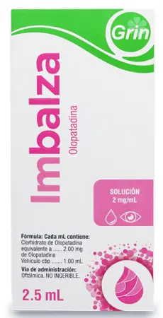 PIEZAImbalza 0.2% es una solución oftálmica que contiene clorhidrato de olopatadina, un antihistamínico utilizado para tratar los síntomas de la conjuntivitis alérgica, como la picazón, el enrojecimiento y la irritación ocular. Su fórmula reduce la inflamación y alivia las molestias causadas por alergias. Cada frasco contiene 2.5 ml de solución, y se recomienda seguir las indicaciones médicas para asegurar su correcta aplicación y obtener los mejores resultados.