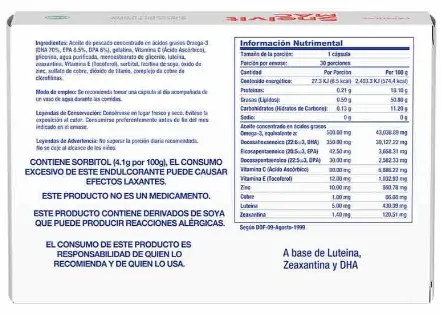 PIEZAEste suplemento alimenticio contiene luteína, zeaxantina y DHA, nutrientes esenciales para la salud ocular. La luteína y la zeaxantina son antioxidantes que ayudan a proteger los ojos de los daños causados por la luz azul y los radicales libres, mientras que el DHA contribuye al mantenimiento de la función visual. Cada caja contiene 60 cápsulas, ideales para apoyar la salud ocular y prevenir la degeneración macular relacionada con la edad. Se recomienda seguir las indicaciones del fabricante para su uso adecuado y obtener los mejores beneficios.