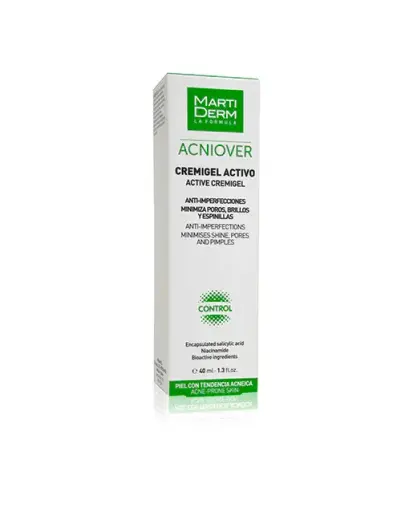 PIEZAAcniover Cremigel Activo, reduce la secreción de grasa, minimiza los poros, puntos negros y espinillas, eliminando la inflamación para una piel más equilibrada y libre de imperfecciones, manteniendo la hidratación de la piel. Sus componentes principales, el ácido salicílico y la vitamina B3, se unen para dar lugar a un producto antimicrobiano, antiinflamatorio y seborregulador. No reseca el rostro gracias a su fórmula libre de alcohol.