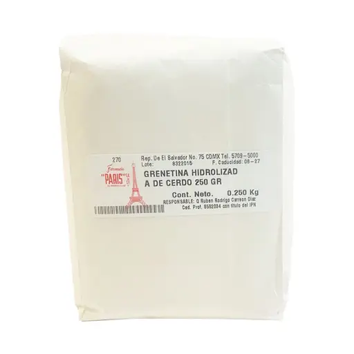 Fuente de proteína pura. Ayuda a mejorar el aspecto de la piel. Fortalece las articulaciones, las uñas, los huesos y el cabello. Producto ingerible.