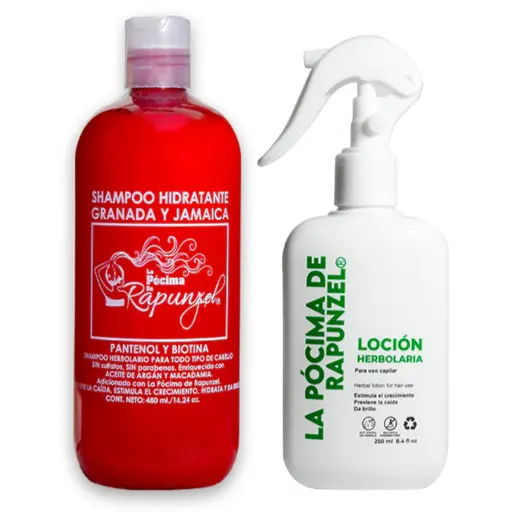Kit shampoo anti caida para cabello seco y locion herbolaria para crecimiento Rapunzel
