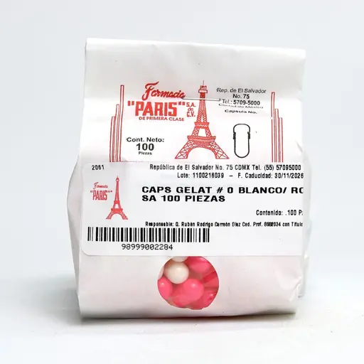 Caps gelat #0 bco/rosa 100 pzas