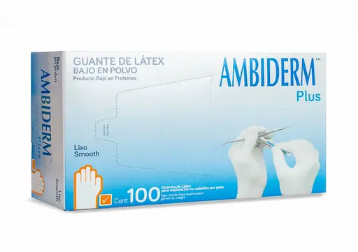Guante de latex plus no esteril ambiderm para exploracion azul chico caja con 100 pi