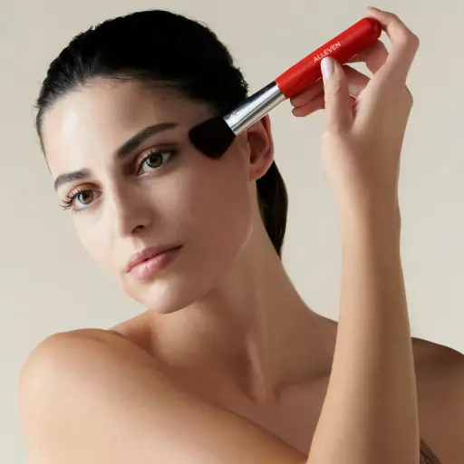 Forma: Brocha de forma redonda o plana, ideal para aplicar y difuminar productos en el rostro.