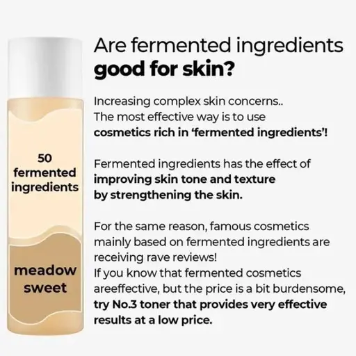 Este potente tónico, formulado con 50 tipos de ingredientes fermentados para iluminar y reafirmar la piel apagada y cansada, prepara e hidrata la piel y aporta todos los beneficios nutritivos de una esencia. Su fórmula revitalizante reduce aún más la aparición de líneas finas y arrugas. Forma parte de una serie numerada de tónicos que brindan un cuidado específico para problemas específicos de la piel, como aspereza y sequedad. Tiene una textura ligeramente espesa y amarilla.