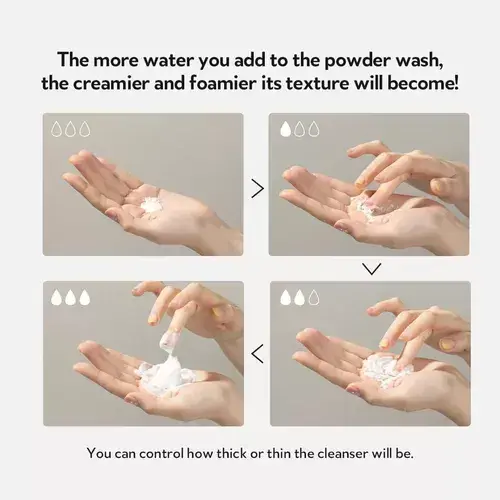 Mezcle el polvo y el agua en la palma de la mano para crear una espuma.