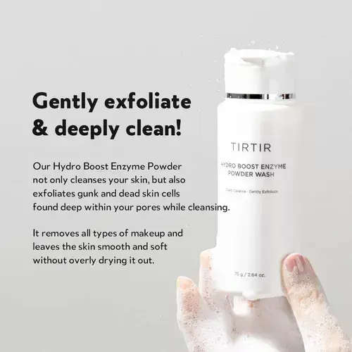 PIEZATIRTIR Hydro Boost Enzyme Powder Wash es un innovador limpiador facial en polvo que se convierte en espuma al contacto con el agua. Este producto está enriquecido con una potente mezcla de complejo de enzimas de arroz, probióticos, PHA y polvo de judía mungo que actúan conjuntamente para proporcionar una piel más clara eliminando suavemente las células muertas de la piel y las impurezas. Su fórmula única está diseñada específicamente para minimizar la irritación y es ideal para viajar gracias a su forma seca que puede llevarse fácilmente en el equipaje de mano.