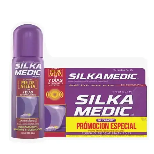 PIEZAEl kit para pie de atleta de Silka Medic incluye dos tubos de gel de 30 g cada uno, diseñados para aliviar y tratar la irritación y el picor causados por hongos en los pies. Su fórmula avanzada ayuda a combatir la infección y proporciona una sensación de frescura y confort. Ideal para mantener tus pies saludables y libres de malestar. ¡Cuida tus pies con Silka Medic y recupera tu bienestar!