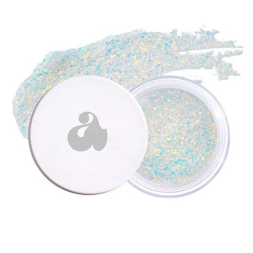 La brillantina de diferente tamaño logra un efecto destellante e iridiscente. Se puede aplicar en el rostro, el cuerpo y el cabello.