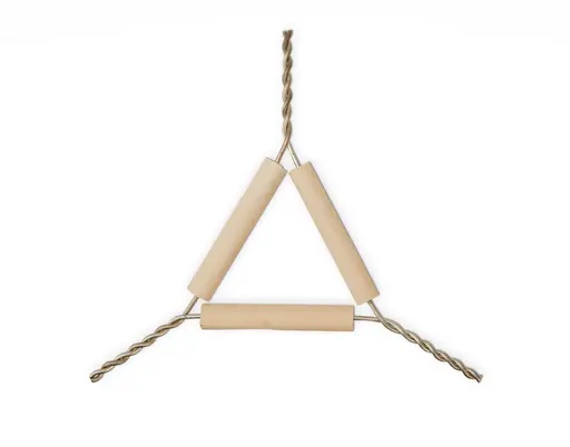 PIEZATriángulo de Porcelana utilizado en procesos de calentamiento de sustancias, para sostener crisoles cuando estos deben ser calentados. Conformado por tres tramos de alambre galvanizado de gran calibre, dispuestos en forma triangular. Cada arista del triángulo posee un tubo de porcelana. Los extremos de los alambres se retuercen juntos, formando tres vástagos que se proyectan hacia fuera de cada esquina del triángulo.