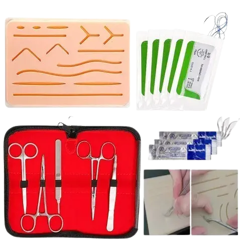 PIEZAEl kit para práctica de sutura es una herramienta educativa diseñada para que estudiantes y profesionales de la salud desarrollen habilidades en técnicas de sutura. Incluye piel sintética que imita la textura de la piel humana, así como herramientas como agujas, hilo de sutura, pinzas y tijeras. Con instrucciones claras, es portátil y ligero, ideal para prácticas en diferentes entornos. Este kit es perfecto para estudiantes de medicina y enfermería, talleres y simulaciones clínicas, ayudando a perfeccionar la técnica de sutura y aumentar la confianza en procedimientos quirúrgicos.