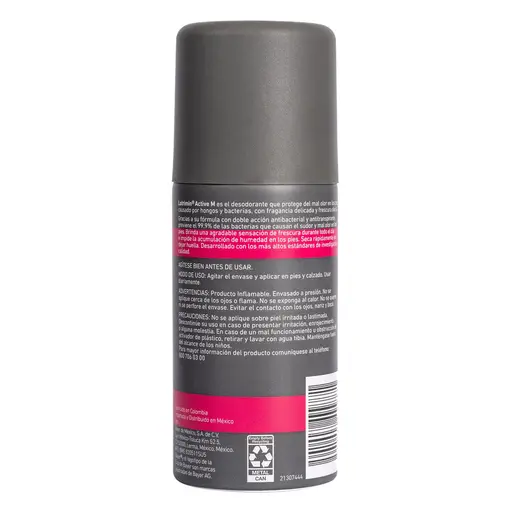 Lotrimin Active Mujer es un spray desodorante de 150 ml diseñado específicamente para mujeres, que elimina el 99.9% de las bacterias causantes del sudor y mal olor en los pies. Ofrece una fragancia delicada y proporciona frescura diaria con un secado rápido.