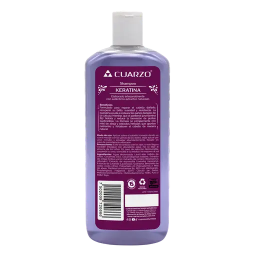Shampoo capilar reparador con pantenol y keratina Cuarzo 550 ml 1X12