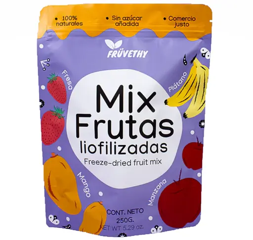 Nuestra porción de 20g de mango liofilizado equivale a 200g de fruta fresca.