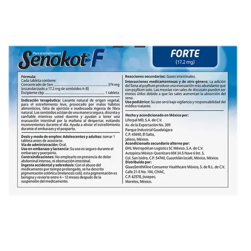 PIEZALaxante natural de origen vegetal, para el estreñimiento leve, provocado por malos hábitos alimenticios, falta de ejercicio e inadecuada ingesta de fibra natural. Los senósidos actúan de una manera segura, discreta y confiable mientras usted duerme y ayudan a tener una evacuación intestinal por la mañana al despertar, evitando inconvenientes durante el día.
