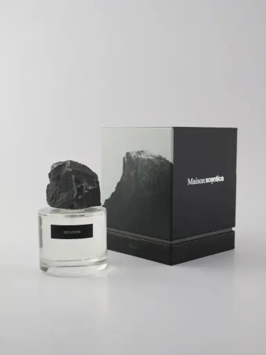 Su frasco, de líneas depuradas y cristal puro, se corona con una tapa con estilo piedra natural, que aporta un carácter orgánico y exclusivo, haciendo de este perfume una verdadera joya olfativa.