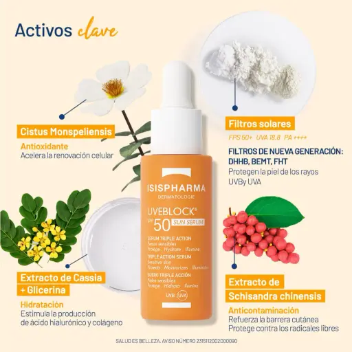 PIEZAFotoprotector de textura fluida y acabado glow, ideal para pieles mixtas, grasas o sensibles. Ofrece muy alta protección contra los rayos UVA y UVB, mientras refuerza la barrera cutánea sin obstruir los poros.