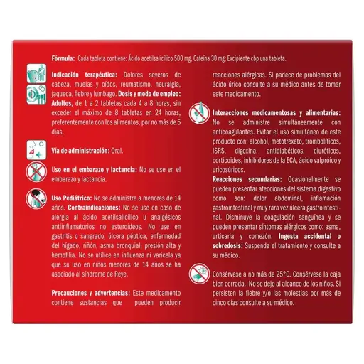 PIEZASedalmerck es un medicamento en tabletas, presentado en un empaque de 40 unidades, que combina cafeína, fenilefrina y paracetamol para el alivio efectivo de los síntomas del resfriado y la gripe. El paracetamol reduce la fiebre y alivia el dolor, la fenilefrina descongestiona las vías respiratorias, y la cafeína potencia el efecto analgésico y combate la somnolencia. Ideal para el tratamiento de dolores de cabeza, congestión nasal y malestar general. Sigue siempre las indicaciones del envase o consulta a un profesional de la salud antes de tomar Sedalmerck.