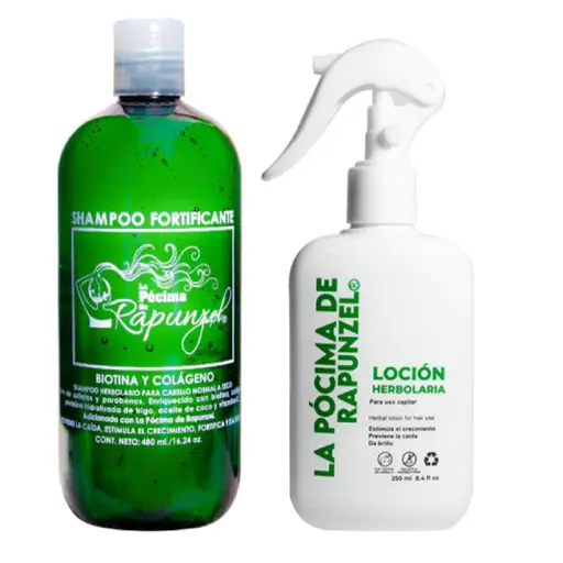 Kit shampoo anti caida para cabello normal y locion herbolaria para crecimiento Rapunzel