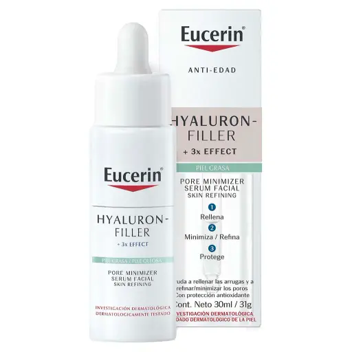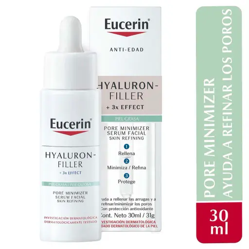 Un serum eucerin ultraligero que afina los poros y ayuda a reducir las primeras líneas de expresión, con protección antioxidante. Con su fórmula ultraligera, de rápida absorción y no grasa, Eucerin Pore Minimizer Serum Facial ayuda a rellenar las arrugas y a refinar/minimizar los poros. Es apto para todo tipo de piel, incluso la piel grasa con tendencia a imperfecciones. Gracias a su fórmula 3x EFFECT:
