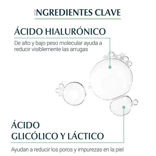 2) Minimiza/Refina: el Ácido Glicólico y el Ácido Láctico ayudan a refinar/minimizar los poros con el uso regular.