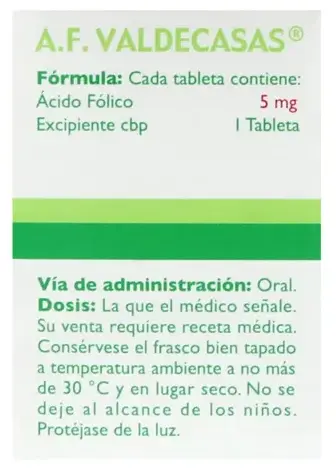 Acido Folico 5 Mg 20 Tabletas Valdecasas