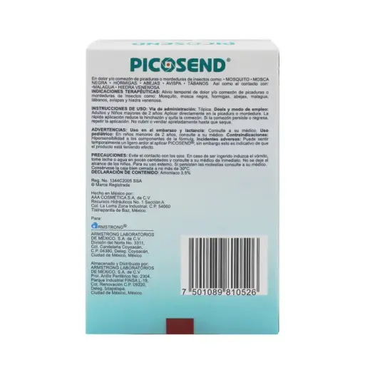 PIEZAAlivio temporal de dolor y/o comezón de picaduras o mordeduras de insectos como: mosquito, mosca negra, hormiga, abejas, mal agua, tábanos, avispas y hiedra venenosa. Su fórmula con amoniaco es de rápida aplicación. Reduce la hinchazón, calma el dolor y alivia la comezón.