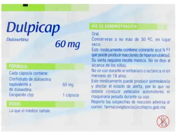 PIEZAAntidepresivo dual (inhibidor selectivo de la recaptación de serotonina y noradrenalina). Está indicada en el dolor por neuropatía diabética periférica. La duloxetina está indicada para el tratamiento del trastorno de ansiedad generalizada.