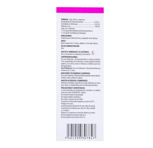 PIEZATusigen NF es un jarabe pediátrico diseñado para aliviar la tos y la congestión en niños. Su fórmula suave actúa como expectorante y antitusígeno, ayudando a reducir la tos y facilitar la expulsión de las secreciones. Su presentación de 150 ml. Seguir las indicaciones del médico para su uso adecuado.